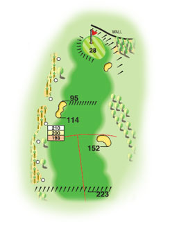 “The opening tee shot often creates additional pressure; so don’t automatically pull out your driver. Aim to the right half of the fairway as the ground falls away to the left. From there, you are hitting into an elevated green cut into the hillside slope, always take an extra club for the elevation change!”