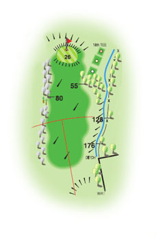 “Another elevated tee and downhill fairway encourages you to ‘open those shoulders’, but it’s towards the end of your round and you might be a little tired, so take care. Trees to the left will limit approach shot options and even a slight curl to the right risks the ground carrying your ball off to the out of bounds.”