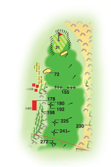 “Aim your tee shot right to compensate for the slope. Long hitters can reach this Par 5 in two, but the green is long, undulating and one of the trickiest. Better to be close to the hole and below it in three shots than a long way away and above it in two.”